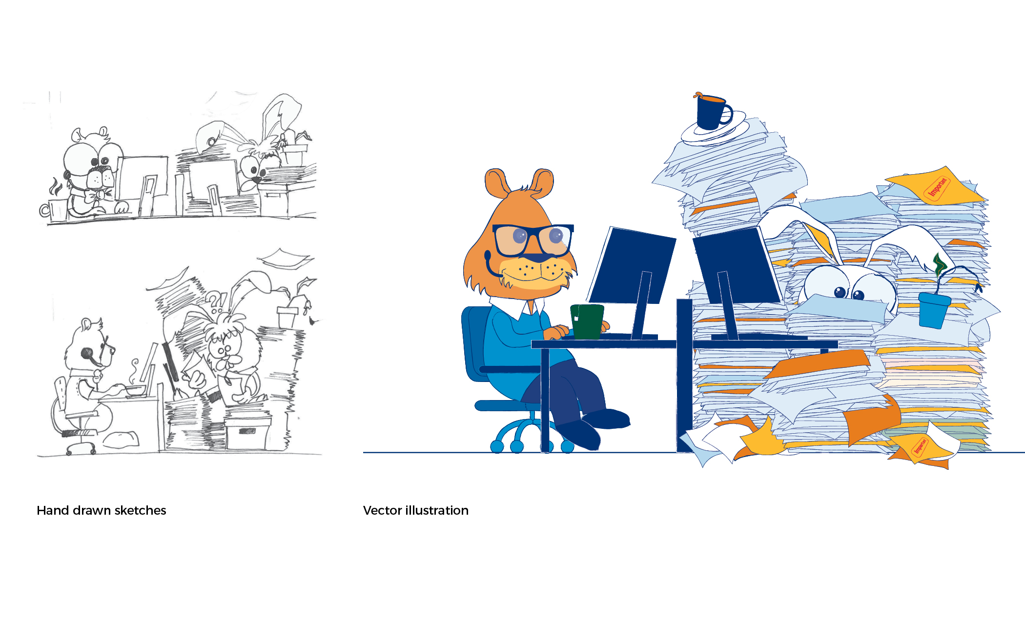 As part of the Better Workplace program, I was tasked to create a whole illustration campaign for PaperSmart. This initiative to declutter work spaces and to reduce paper usage within Standard Life.