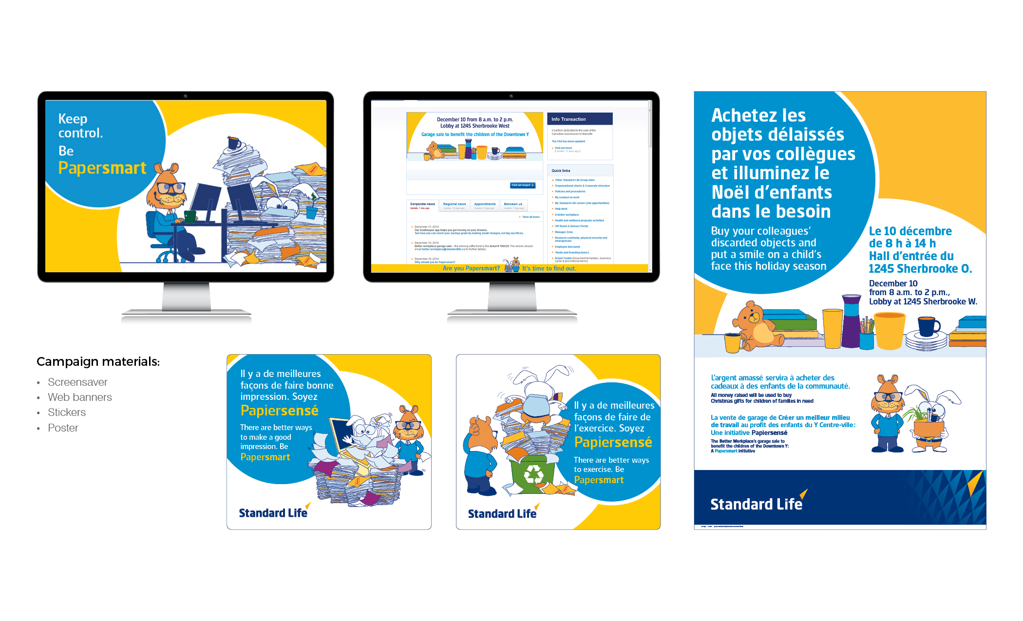 Once the characters were approved by marketing, I proceeded in the creation of web banners, screen savers, stickers and poster. Not a lot of printed document (e.g. flyer and brochure) were made for this campaign to further promote the reduction of paper use.